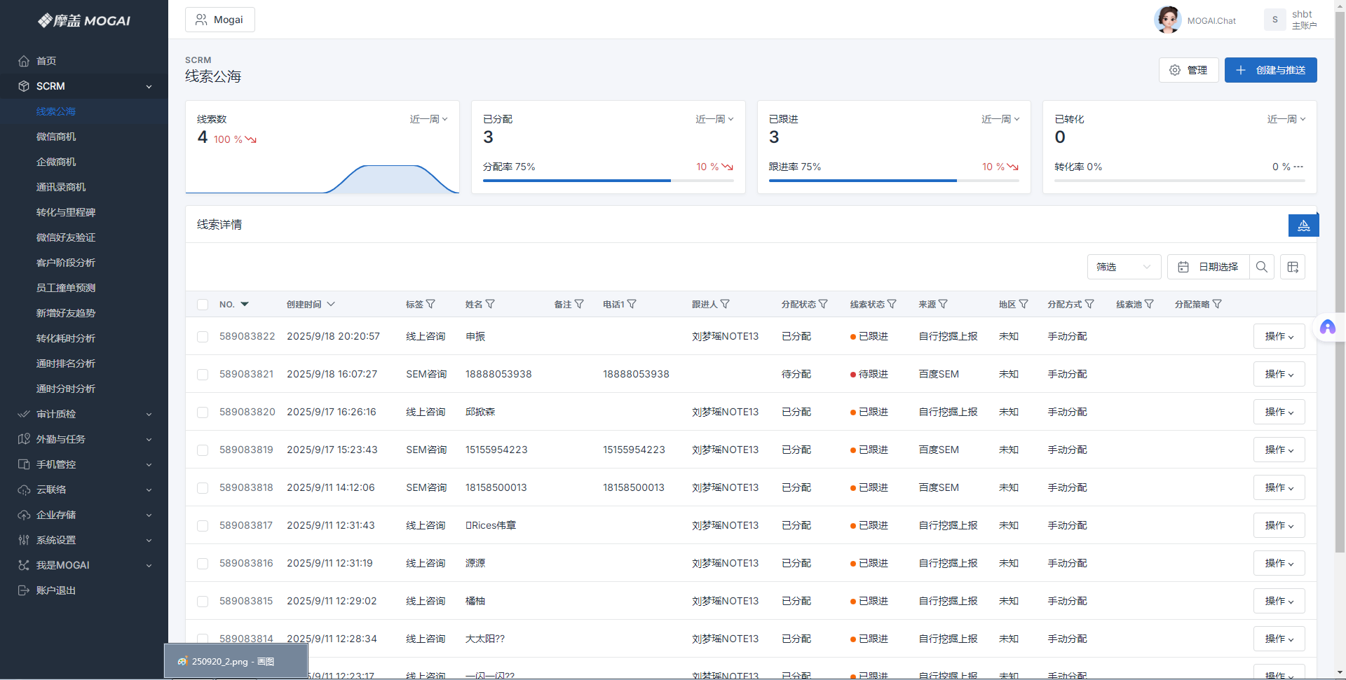 可通过EXCEL导入、API接入、人工录入、抖音组件导入等方式,将客资线索接入公海池,后供线索岗专员手动分配下发线索,或根据分配策略自动化分配线索。