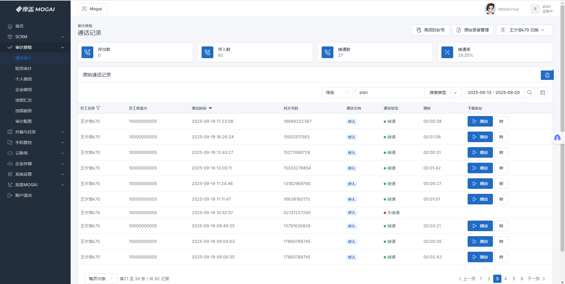 > 电话/短信/微信沟通内容全记录 > 双轨录音不丢失 > 手机号、微信号等数据脱敏显示 > 实时拦截辱骂、红包、数据删除等敏感行为